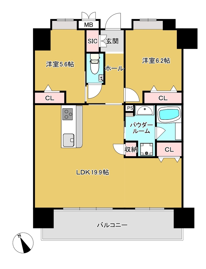 2LDK / LDK19.9帖 洋室6.2帖 洋室5.6帖
