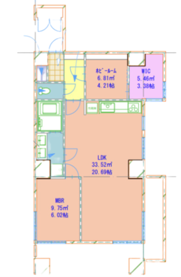 間取り: - 1LDK/LDK20.69帖 洋室6.02帖 ※別途ホビールーム 4.21帖+WIC3.38帖